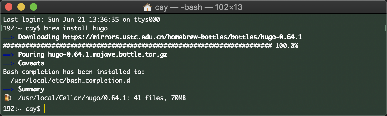$ brew install hugo