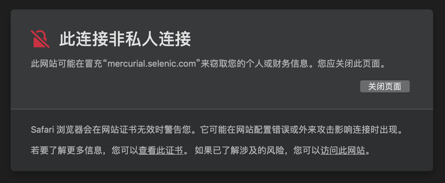 Mercurial网站的证书已失效,进入官网的时候会显示如下警告: