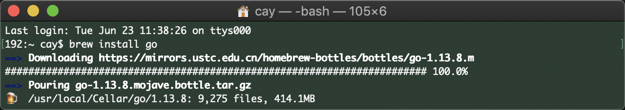 Go的下载可以通过使用Homebrew进行安装而非手动下载安装:
